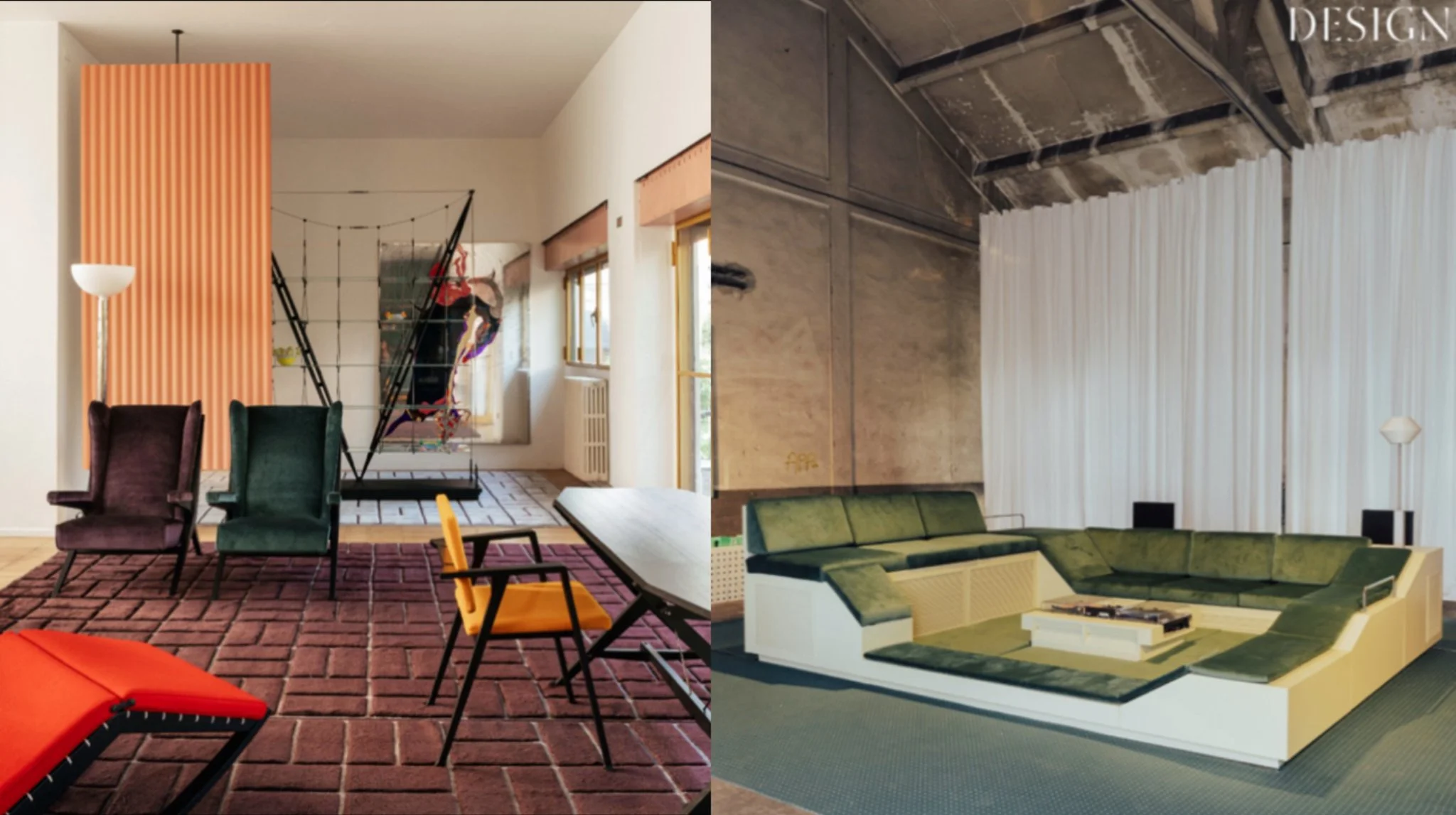 Left: Haworth & Cassina by Patricia Urquiola at Villa Pestarini; right: Supaform at Baggio military hospital
